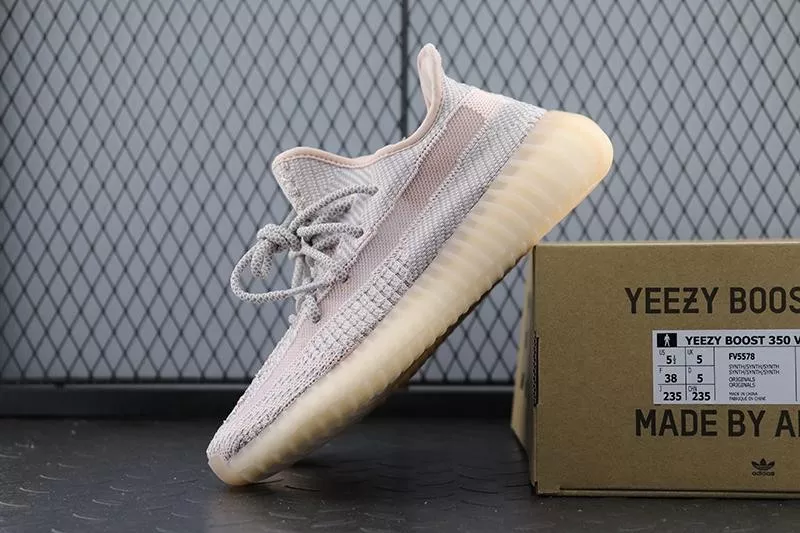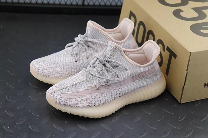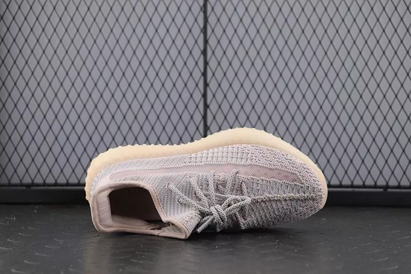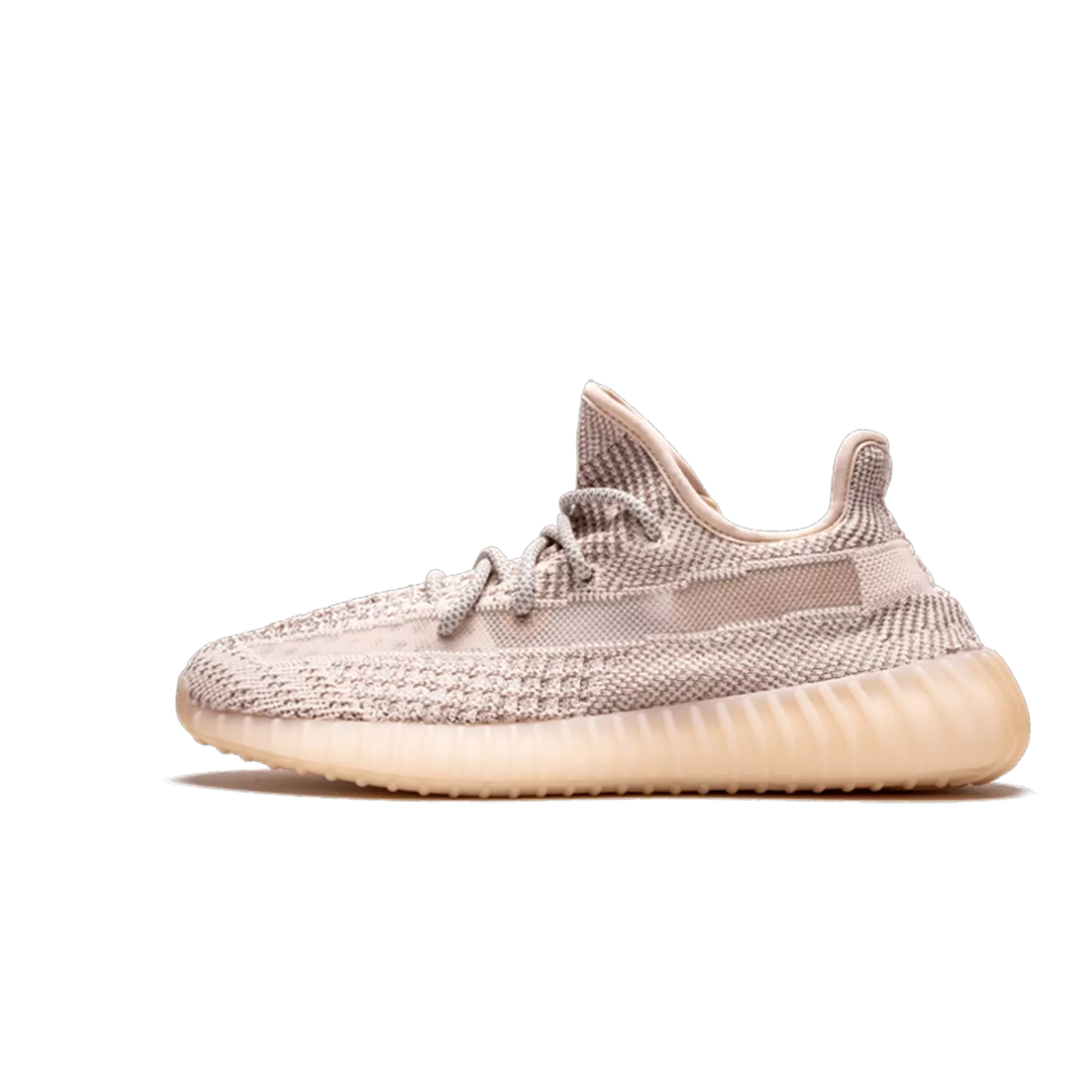 The adidas Yeezy Boost 350 V2 Synth (non-reflective) is one of the limited regional-exclusive colorways of the popular sneaker by Kanye West that released during the summer of 2019. This is the Synth colorway in its iteration without reflective detailing, which released only in the Asia Pacific, Middle East, and Africa markets. It features a pale reddish-pink tint across the Primeknit upper, translucent monofilament side stripes, and a translucent rubber sole in a hue that matches the upper. The Primeknit is woven in the same intricate pattern of other 2019 releases of the shoe, including the Static and Clay colorways. This Synth Yeezy released on June 2019 in very limited quantities.