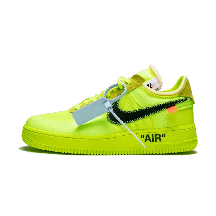 The Off-White x Nike Air Force 1 Low ¡°Volt¡± came out in December 2018 and added a blast of color to a year of releases from Virgil Abloh and the Swoosh. Releases alongside a black colorway in the same materials, this decidedly bolder edition features a Volt synthetic and mesh construction with matching suede for the eyestay paneling and heel tab. Black Swooshes add contrast, while the design is completed with Abloh¡¯s usual detailing that includes bright orange tabs, ¡°AIR¡± printed on the midsole, and a light blue zip-tie. The vibrant colorway ensures that this Off-White x Nike Air Force 1 Low ¡°Volt¡± stands out in its own way from the many Abloh-designed Nike models of 2018, and will remain one of the most memorable offerings from the ongoing collaboration for years to come.