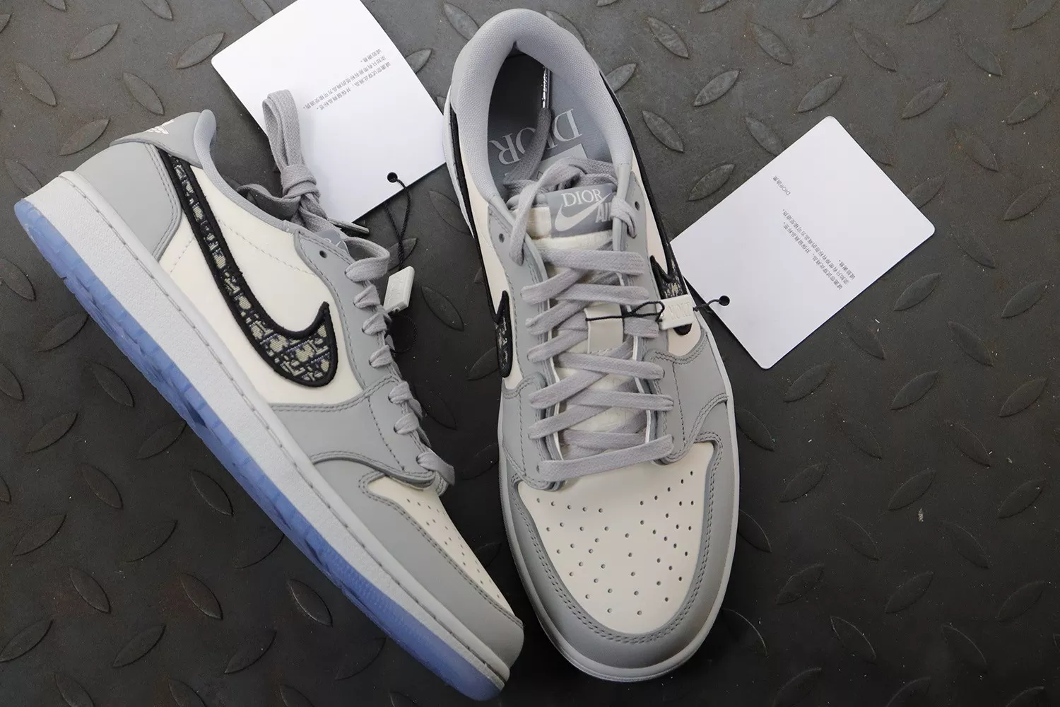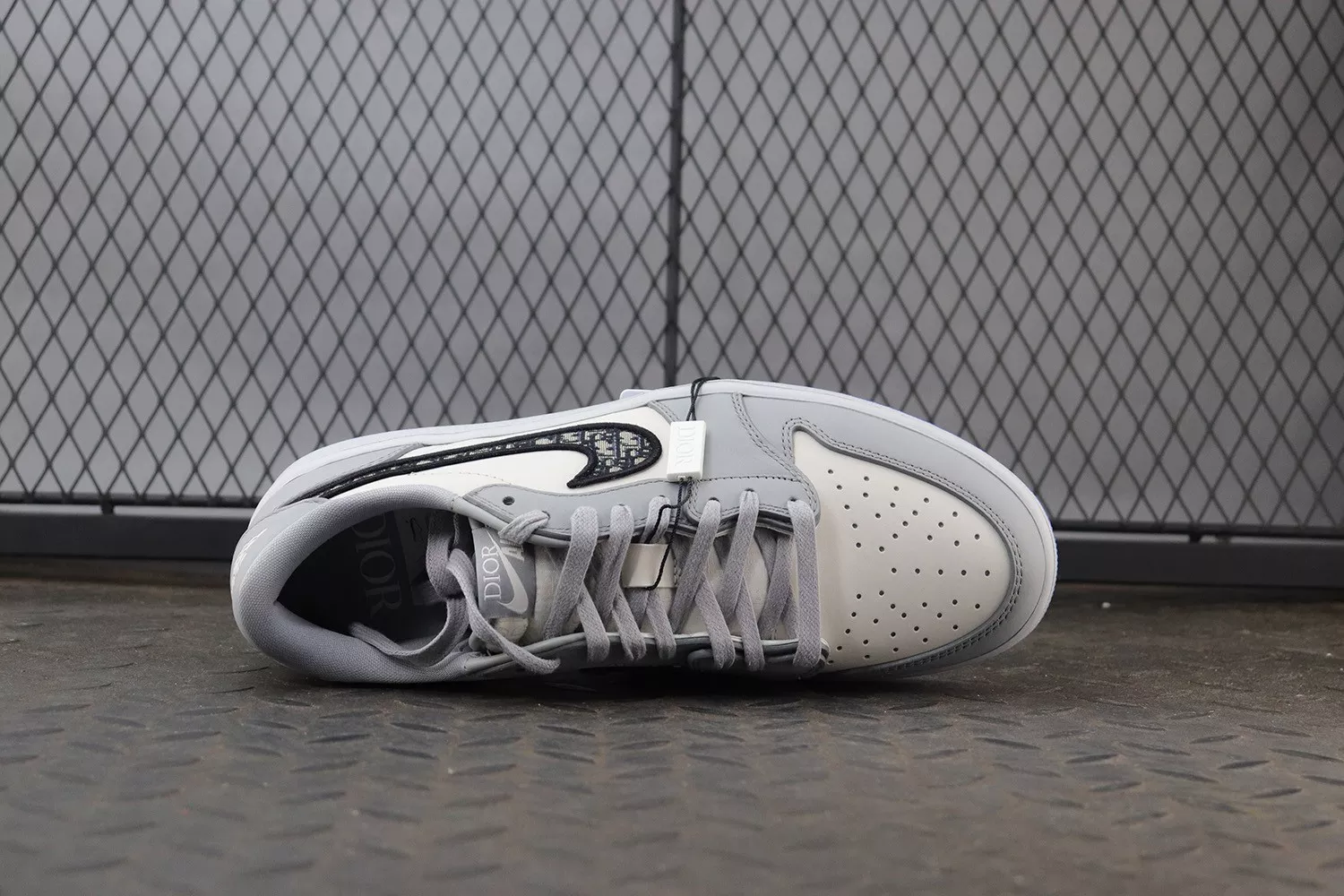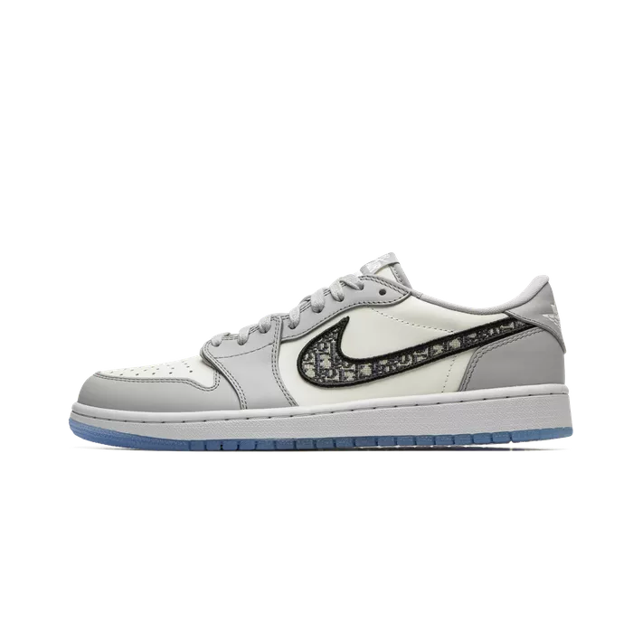 Jordan Brand connected with Parisian fashion house Dior to create history with the Jordan 1 Retro Low Dior, now available on StockX. This is the first time that Jordan has collaborated with a legacy fashion label like Dior, making this release one for the books. This release was limited to only 4,700 pairs, each pair individually numbered. This Jordan 1 Retro Low is composed of a white and grey leather upper with traditional Dior monogram print Swoosh.