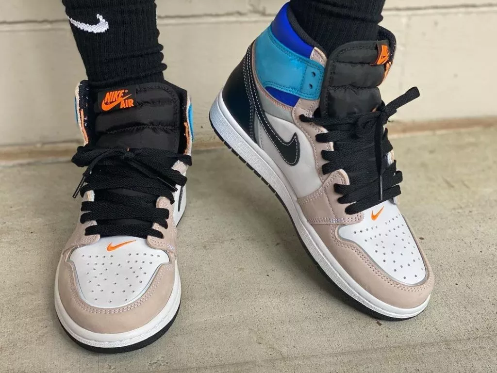Joining Jordan Brand’s Fall 2021 lineup, the Air Jordan 1 High OG “Prototype” receives a release date right before the leaves turn orange. The Jumpman has followed up with the new design that adds to a slew of colorways prepped for the upcoming season such as the Air Jordan 1 Low “White/Eclipse Bronze” and Air Jordan 4 “Shimmer.” Announced back in June, the silhouette takes on a colorway that resembles that of the Tune Squad team from the recent Space Jam: A New Legacy film. With a blank white leather base for the toe box and panels, soft two-toned gray nubuck overlays wrap around the uppers while the laces, tongue, main Swoosh and heel prefer a black hue. The perforated collar is supported in sky and electric blue tones as hints of orange pop out from the tongue branding and contrast stitching over the ankle. The “Prototype” offers a unique irreversible option of removing the collar to transform from a high-top to Air Jordan 1 Low for those who’d like to pull off Chris Paul’s DIY Air Jordan 1 “Shattered Backboard 3.0” Lows look.