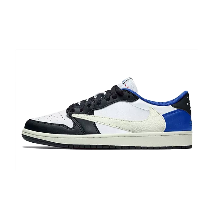 Hot off the heels of his 29th birthday, Travis Scott is starting strong a year of sneaker releases. Following the debut of his Air Jordan 6 “British Khaki,” La Flame has not just one but multiple releases planned with Hiroshi Fujiwara’s fragment design. Here, the Air Jordan 1 Low takes the stage, flipping the colorway of the already confirmed and well-documented High. A bit different from what dressed the celebrity’s feet back in January, the colorway coats its flipped lateral Swoosh, laces, and midsole in a vintage-esque cream shade. Below that, the base contrasts in an unpigmented white, while the overlays flaunt polished black leathers. fragment’s penchant for Royal blue also makes a cameo, outfitting the counter in a fashion not too dissimilar to their own AJ1 from years back. Branding, both in the form of the Cactus Jack logos and the Japanese studio’s own thunder bolt, then complete the design along the back heel.