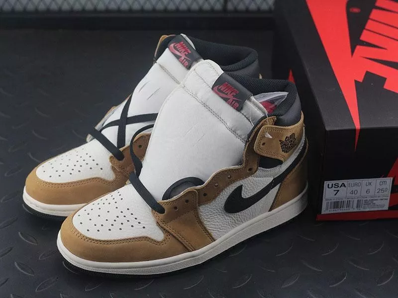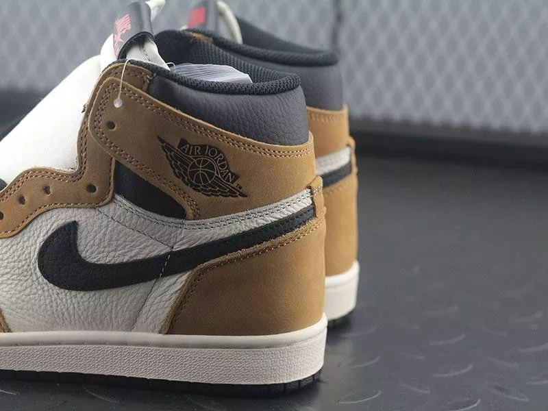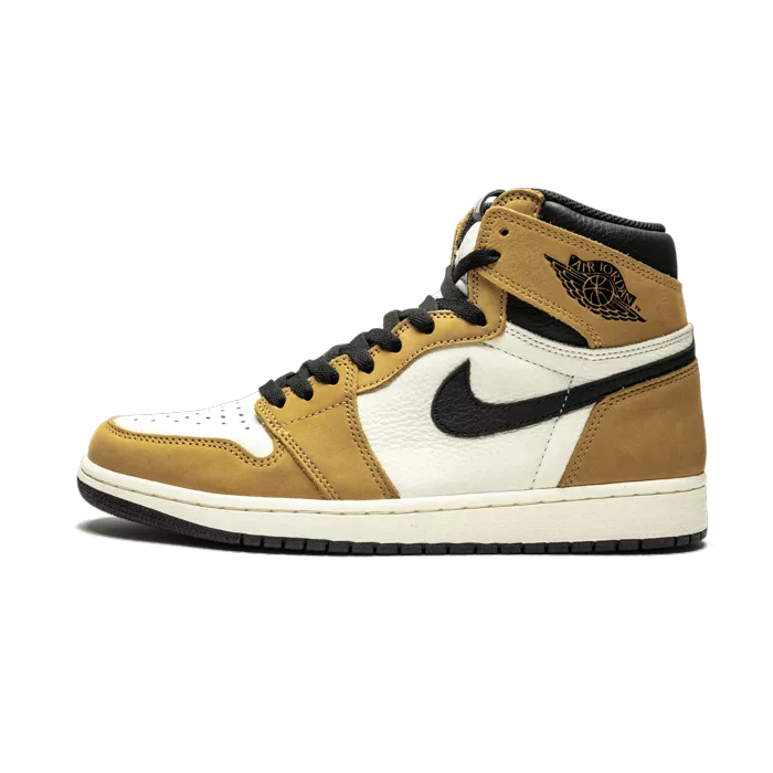 The Air Jordan 1 Rookie of the Year is a unique colorway commemorating Michael Jordan Rookie of the Year honors in 1985. When Jordan won the award after his debut NBA season in 1984-85, the Chicago Bulls star accepted the trophy wearing a tan-colored jacket, which inspires the primary color on this shoe. The construction features a white full-grain leather base with tan nubuck overlays and black accents. This Jordan 1 colorway also has hidden details under the detached ankle panels, including MJ’s rookie season statistics and a quote from his acceptance speech. The Air Jordan 1 Rookie of the Year released in November 2018.