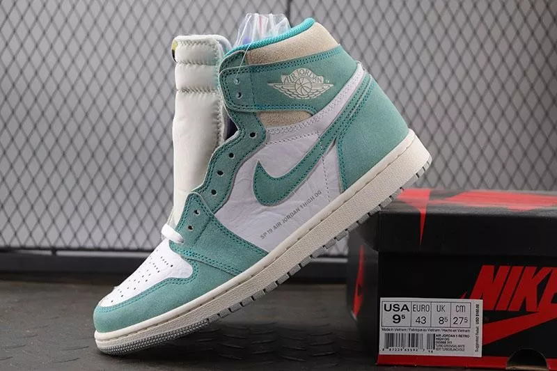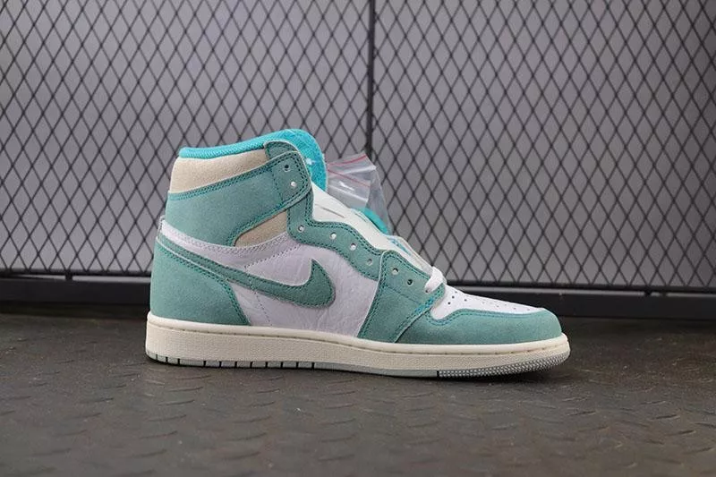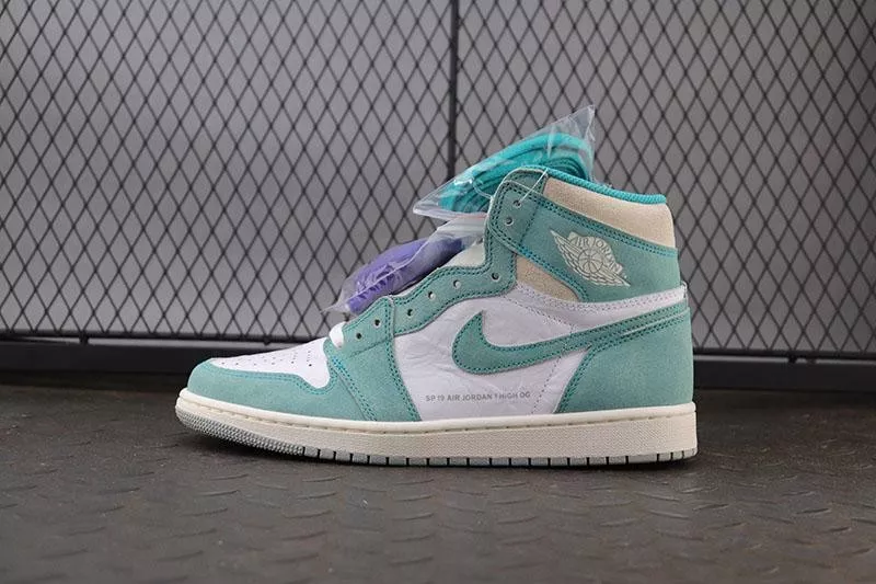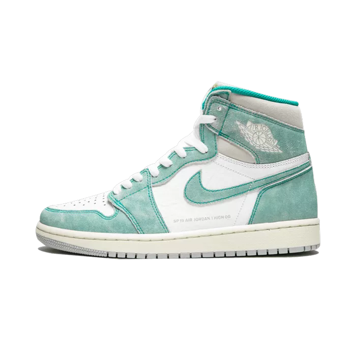The Air Jordan 1 High Turbo Green is a unique colorway for the classic Michael Jordan signature shoe that released as part of the 2019 NBA All-Star collection from Nike and Jordan Brand. The washed leather upper in Turbo Green and white pays tribute to the classic Charlotte Hornets team colors, the host team for the 2019 All-Star game, and gives the shoe a vintage look. A gold and purple Nike logo is found on the tongue, and alternate purple laces are included to add to the Hornets vibe. The upper also features a new detail that appeared on select pairs of Air Jordan 1’s in 2019: text of the model name and season of release printed on the midfoot. The Air Jordan 1 High Turbo Green released on February 15, 2019.