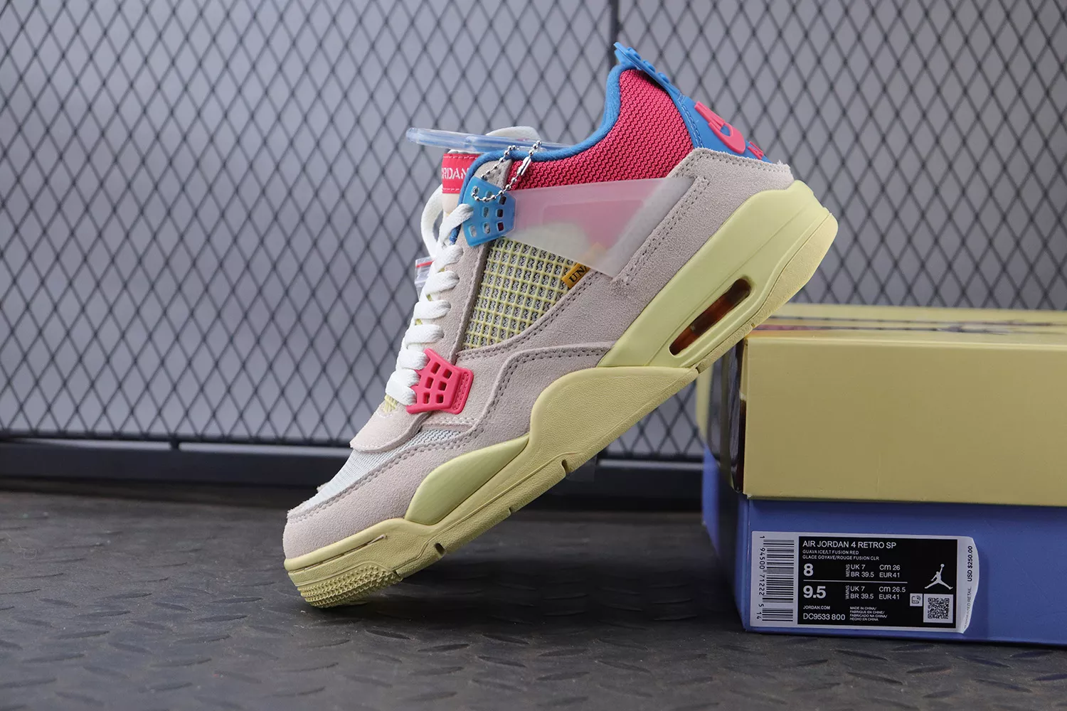 Los Angeles-based sneaker/streetwear boutique, Union, joined forces for a second time with Jordan brand to drop the Air Jordan 4 Union Guava Ice. Similar to 2018’s unique construction, the product of this second partnership isn’t immune to creative design.The Air Jordan 4 Union Guava Ice features many new elements never before seen on the silhouette. The most notable addition comes in the form of a foldable nylon tongue, showing off the “Air Jordan” logo traditionally stitched on the tongue’s backside. From there, hits of Guava, Fusion