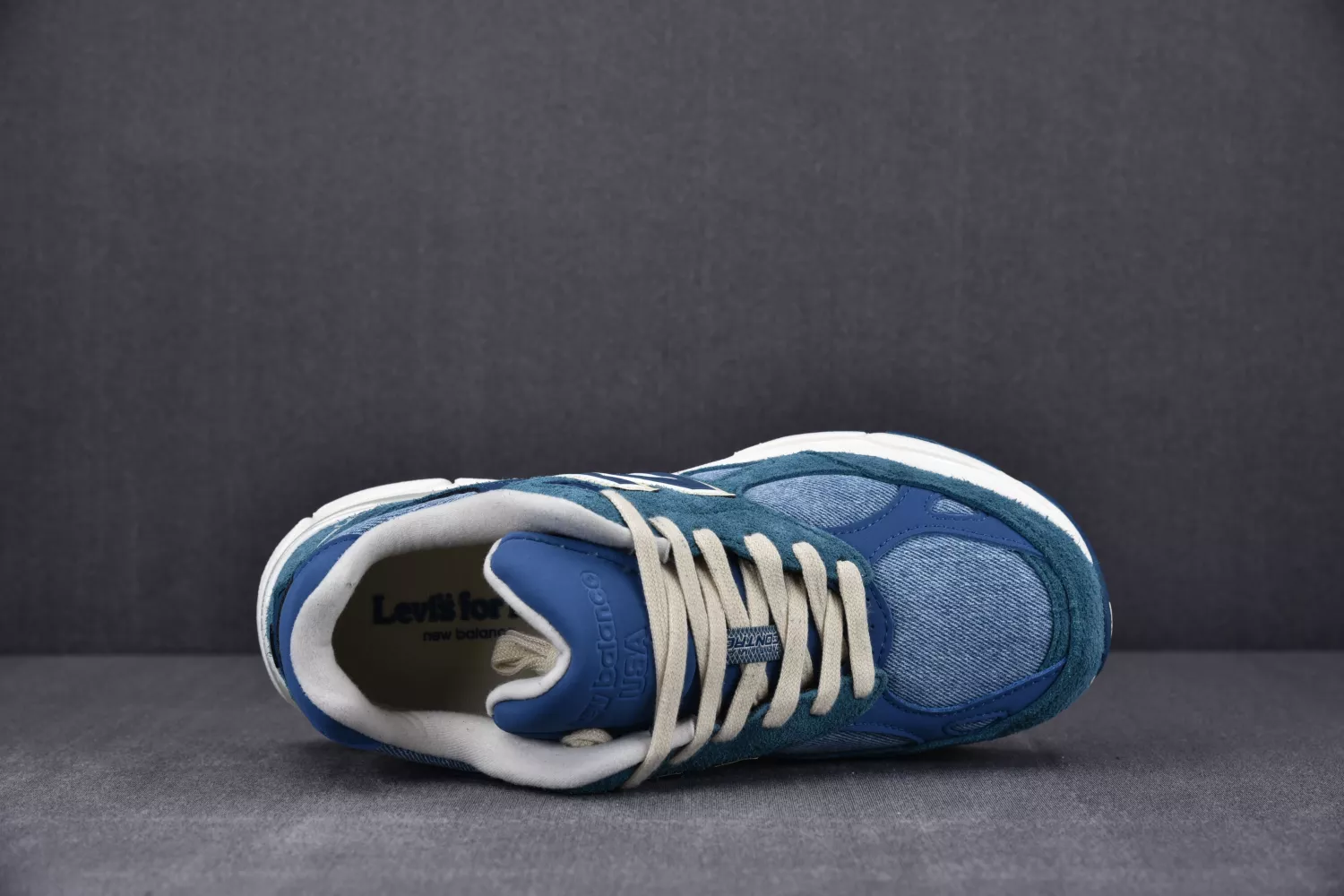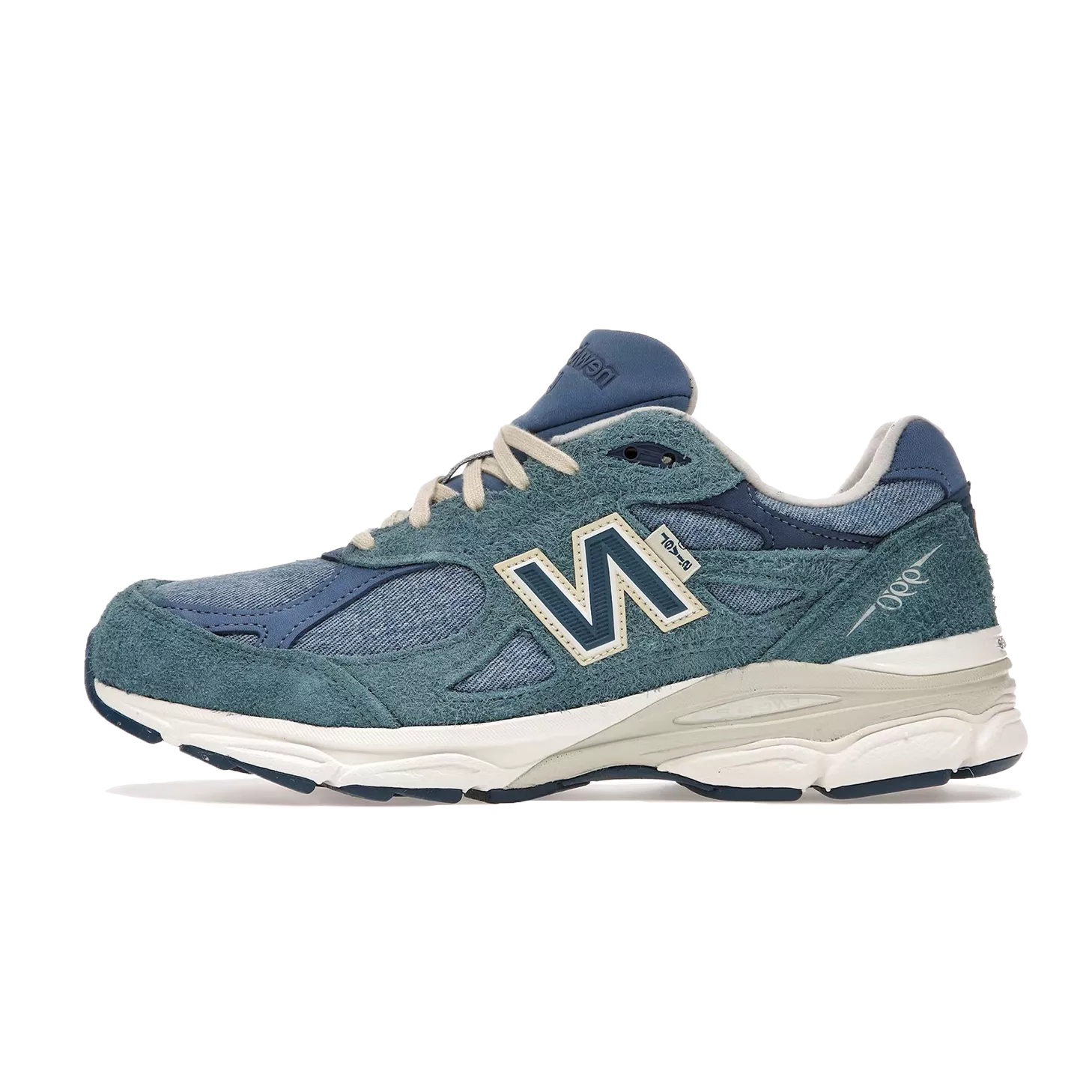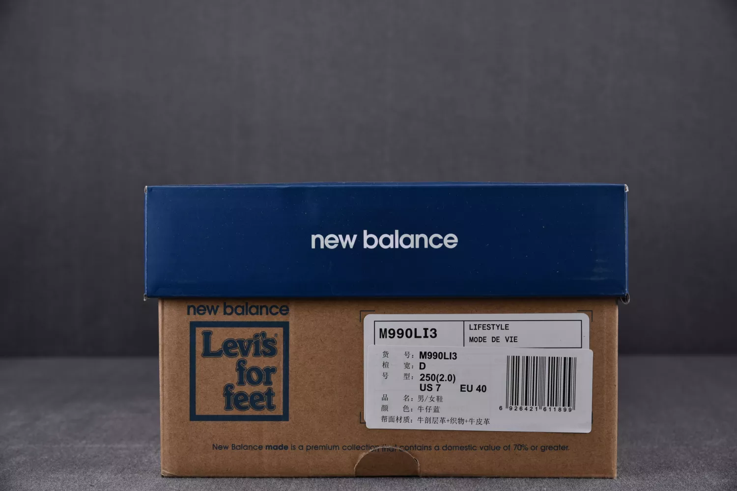 The New Balance 990v3 Levi’s Denim is rich in its texture, combining blue hairy suede and denim for next-level plushness. A Levi’s logo tab sticking off the side of a New Balance logo on the upper logo nods to the back-pocket branding of most Levi’s jeans.