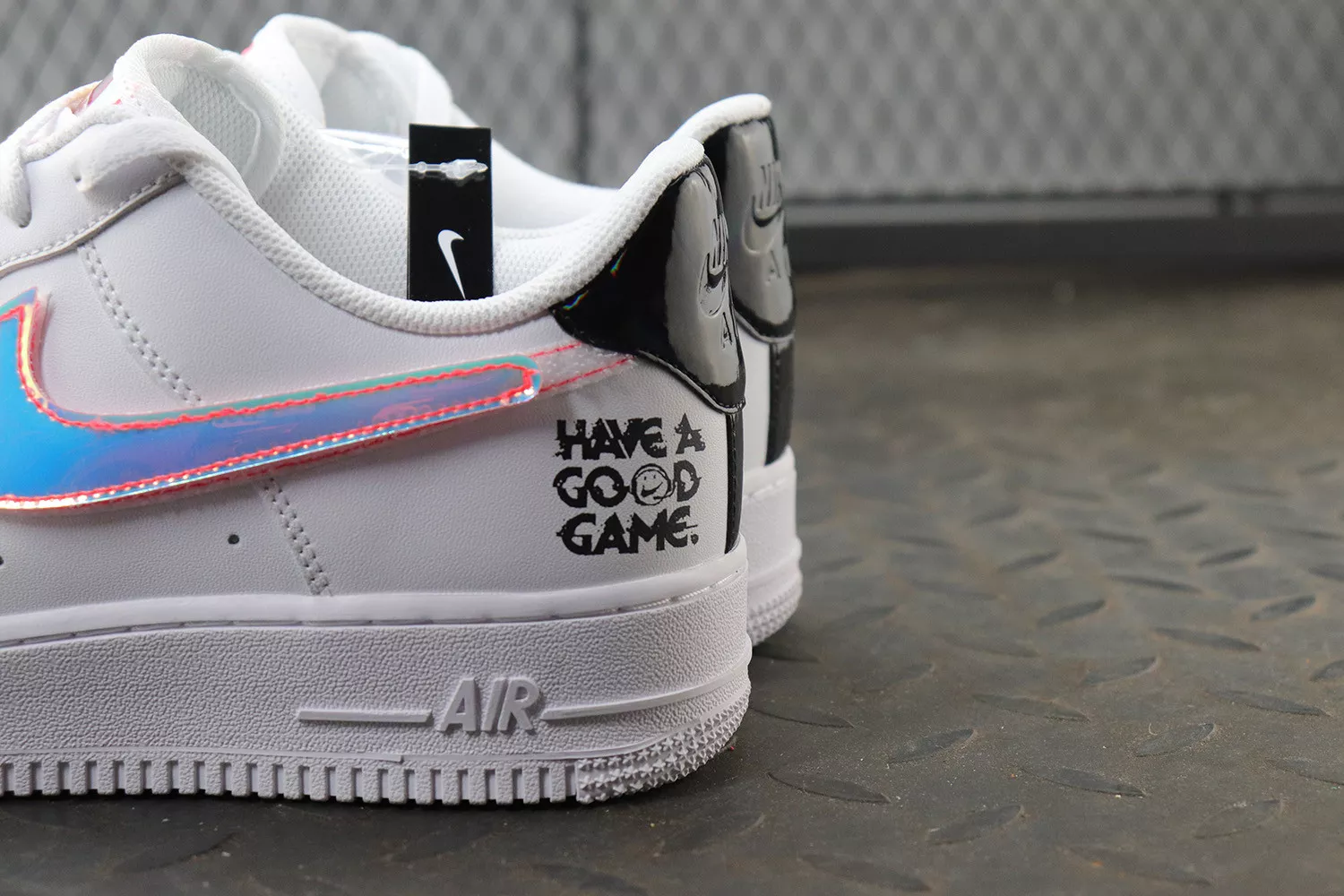 While an Air Jordan 1 High Zoom headlines its collaboration with League of Legends, NIKE, Inc. has prepped an assortment of different styles ahead of the World Finals for the game’s professional scene (October 31st). Among it, a Nike Air Force 1 Low with “HAVE A GOOD GAME” messaging on the lateral heel and other special detailing. Unlike an adjacent Blazer Mid, the forthcoming take on Bruce Kilgore’s design maintains a predominantly “White” arrangement. Profile swooshes, however, make up for the pair’s blandness with not only their iridescent finish, but also removable build. Accents across the vamp and tongue further indulge in the color-changing effect, while “NIKE AIR” branding on the sockliner alternate between left and right shoe. Overlays at the heel boast an all-black color scheme, but partake in a glossy composition. Underfoot, sole units maintain their tried-and-tested, triple-white look.