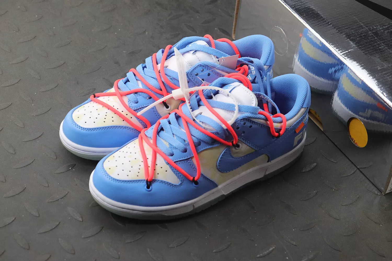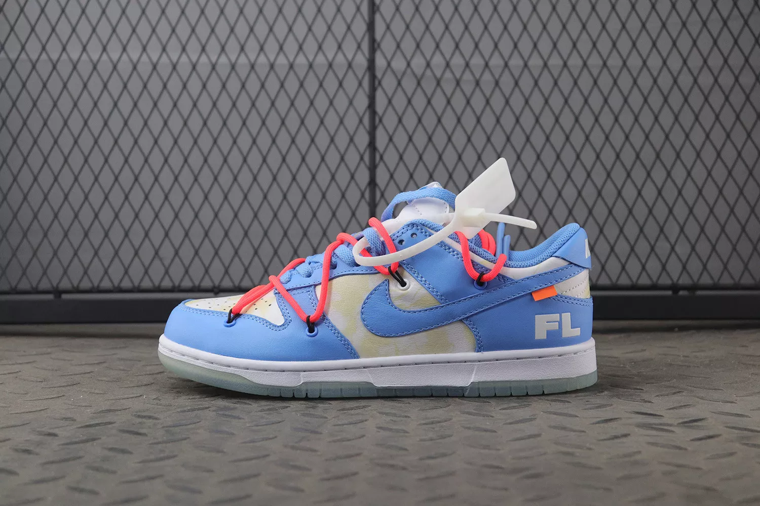 Unlike Abloh’s other Dunk Low collabs, the “UNC” is a SB shoe, meaning it’s designed for skateboarding. Painted in the classic University of North Carolina colour palette, the upper is crafted from nothing but the finest leather making it sleek and smooth to the touch. A Swoosh shoots across the lateral and medial side panels, and just like the aforementioned Dunks, this particular pairs boasts a trail shoe-inspired lacing system where you get the traditional flat laces as well as a zig-zag setup for the ultimate lockdown fit.