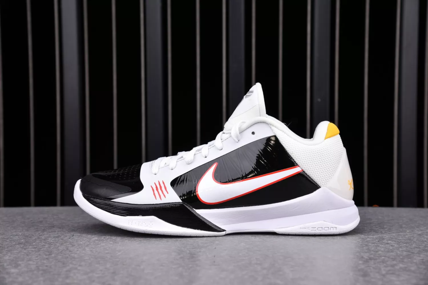 The Nike Zoom Kobe 5 Protro ‘Bruce Lee’ is inspired by the legendary martial artist, whose style and mindset reflects Kobe Bryant’s play on the hardwood. The shoe comes with a black and yellow design completed with red scratch marks on the lateral forefoot, recognizing Bruce Lee’s jumpsuit from his iconic film “Enter the Dragon”. The lightweight build utilises Nike’s Flywire technology throughout the upper, supported by a foam midsole housing a large-volume Zoom Air unit in the forefoot.