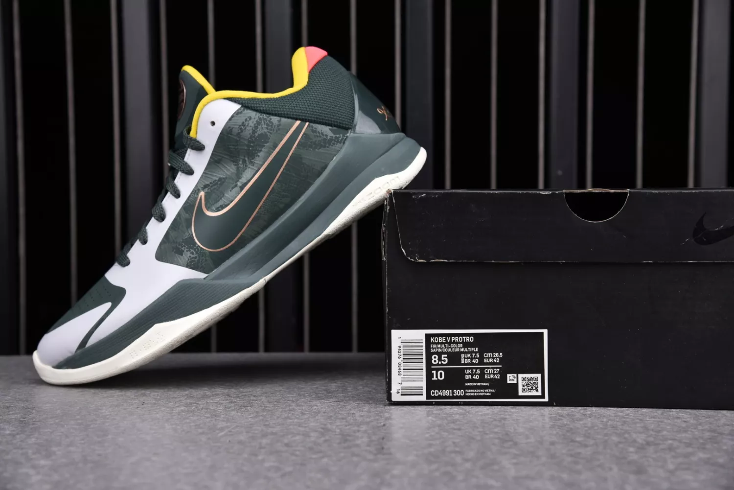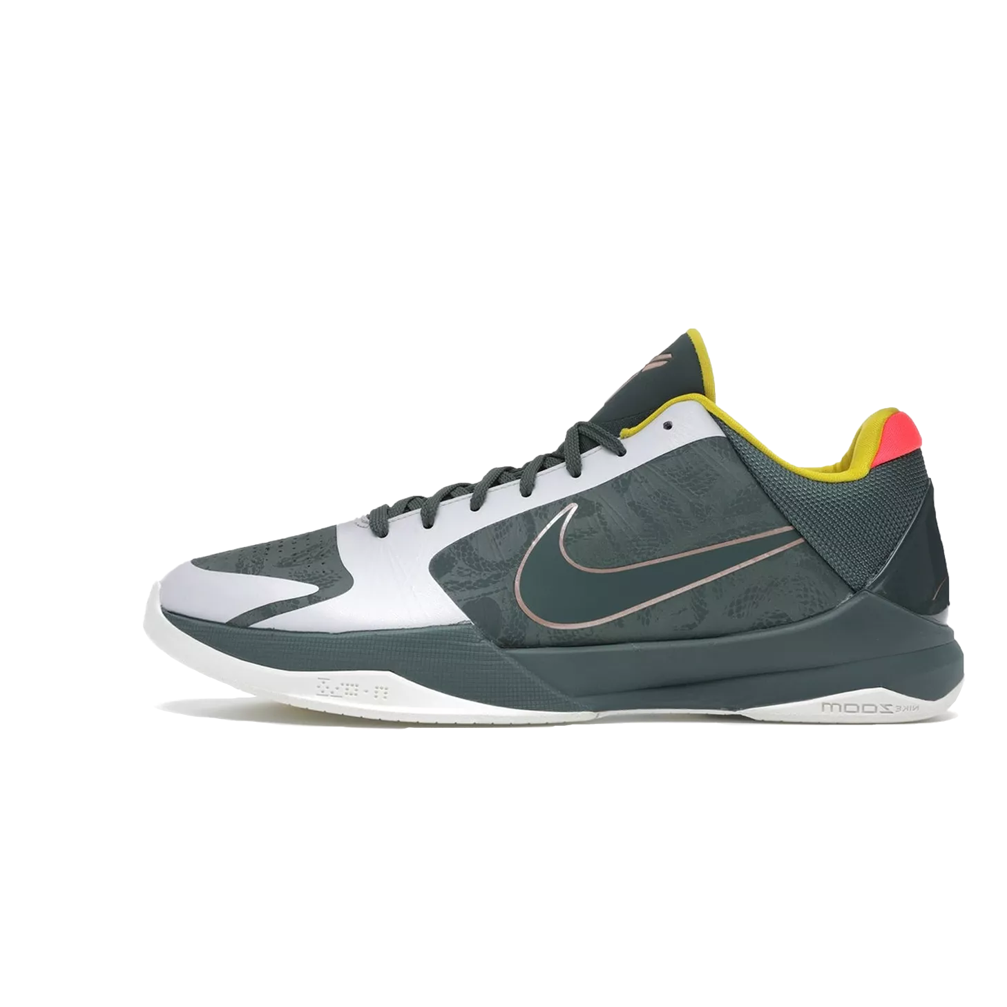 The Nike Zoom Kobe 5 Protro ‘EYBL’ is taken from a special 2020 collection that launched as part of Mamba Week, a weeklong celebration of Kobe Bryant’s legacy that kicked off on the athlete’s birthday, August 23. The low-top draws inspiration from Greek mythology, featuring a scaly texture on a dark green synthetic upper that conjures images of the villainous Medusa. Nike’s EYBL logo adorns the tongue of the left shoe, while Kobe’s personal logo graces the opposite tongue.