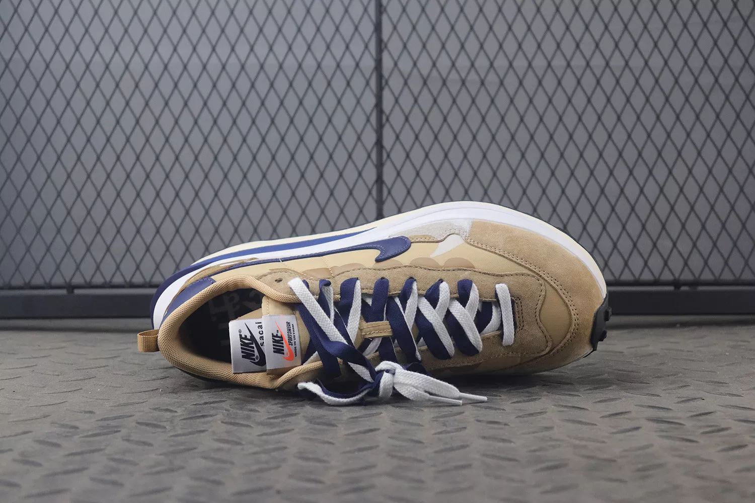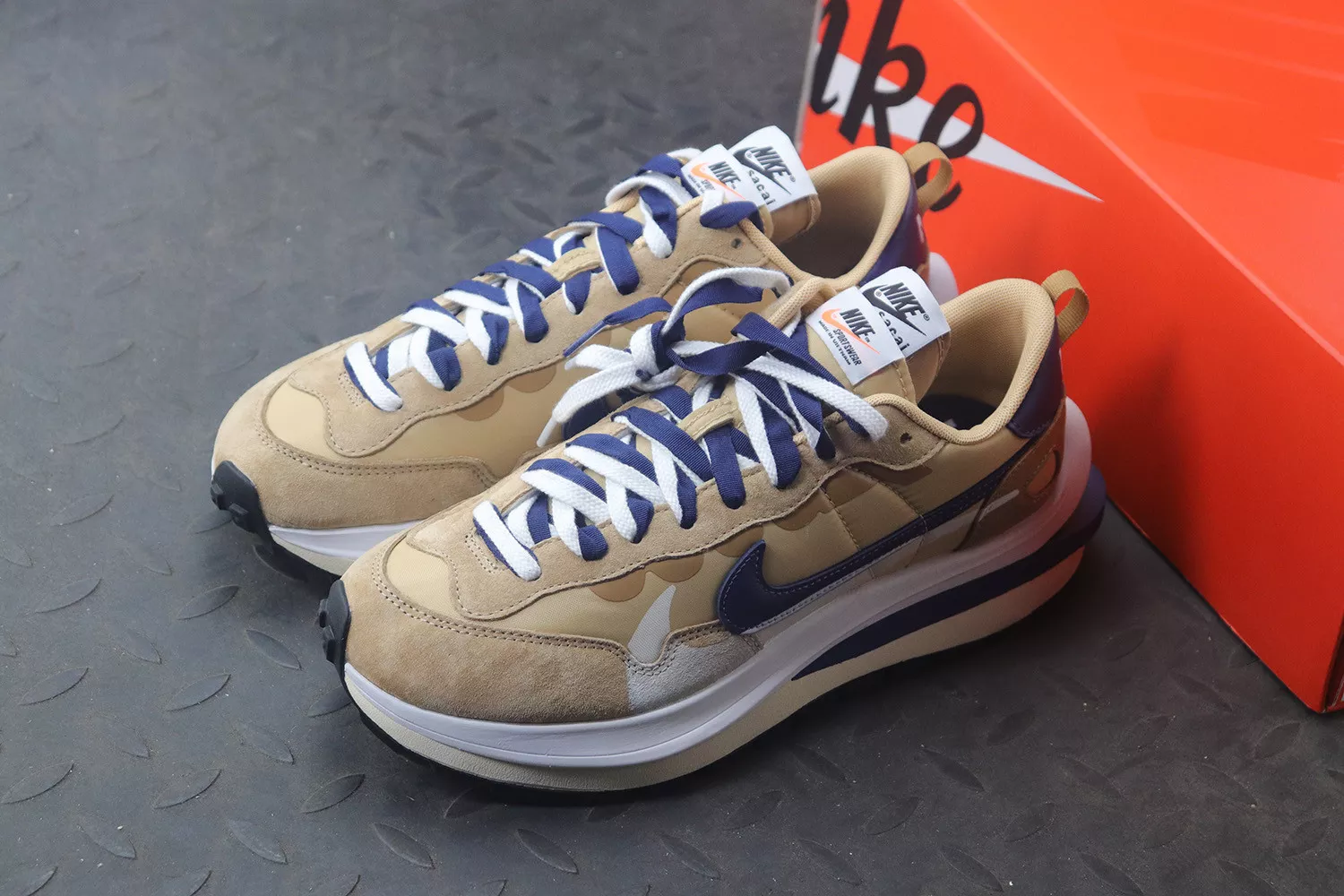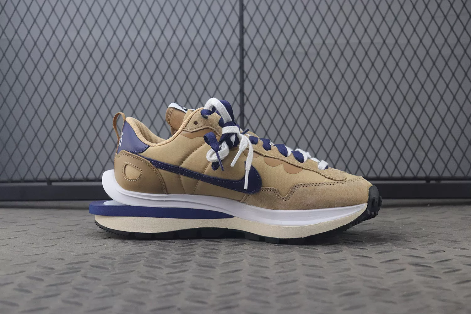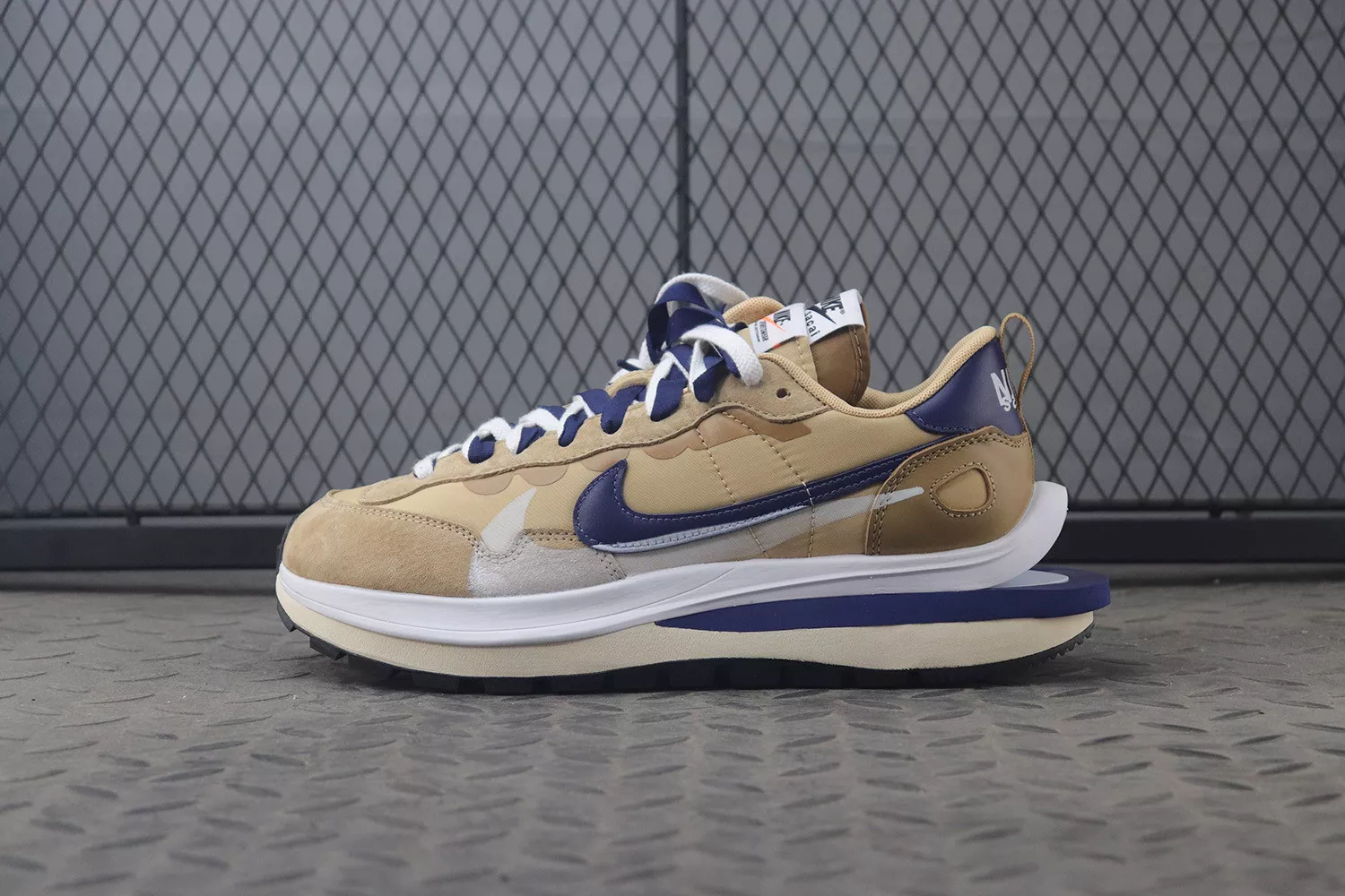 sacai and Nike started 2021 on a rather eventful note. Alongside a number of teased three-ways, the two have more VaporWaffle colorways on the way. Very soon — possibly this April — we’ll see not only the previously revealed “Dark Iris” but also the accompanying “Sesame.” Unlike its purple counterpart, the pair tunes into a far brighter spectrum of hues. The base, which is made of nylon all the same, tints a soft cream, while darker tan shades treat the suede over top the toe and eye stay. The dual tongues adjacent offer a similar palette, though the same can’t be said for the ribbon laces which prefer “Blue Void.” This navy tone is also utilized along the heel tab, Swoosh, and tooling, all accenting complementing white fixtures.